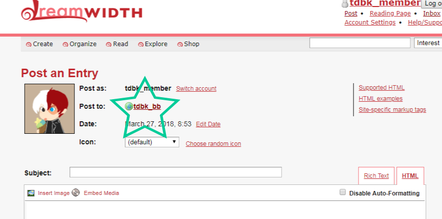If you are posting as Anon, you will need to follow these steps in order to post to the community. Dreamwidth does not allow for multiple entries to save as a draft so please follow these steps to ensure that no progress is lost.